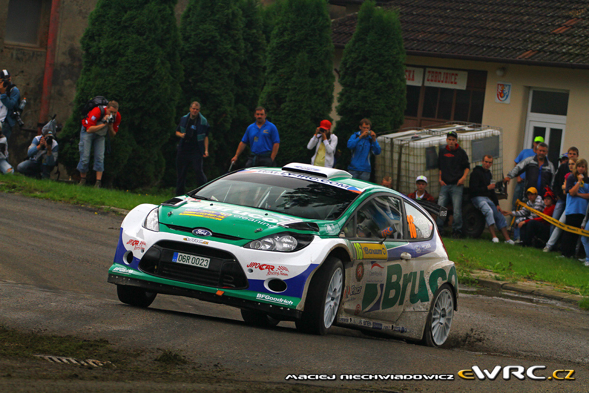Ας τα πάρουμε με την σειρά όμως. Το πλήρωμα που θεωρείτω το δυνατό φαβορί για τον αγώνα ήταν οι Kopecky-Stary με το επίσης εργοστασιακό Skoda Fabia S2000. Και φυσικά τίμησαν τον τίτλο αυτό καθώς εξ αρχής τέθηκαν επικεφαλής και όλα έδειχναν ότι πάνε για την νίκη στον τοπικό τους αγώνα. Ήταν το ταχύτερο πλήρωμα του αγώνα αλλά όλα αυτά μέχρι την 14η ε.δ.. Εκεί, και ενώ ήταν μπροστά με διαφορά 26'' σχεδόν, είχαν έξοδο με αρκετά χλμ στο κοντέρ που τους ανάγκασε να εγκαταλείψουν τον αγώνα ευτυχώς χωρίς τον παραμικρό τραυματισμό. Η εγκατάλειψη αυτή δείχνει ότι "ρίχνει" σημαντικά τις ελπίδες των Τσέχων για τον φετινό τίτλο καθώς είδαν τους αντιπάλους τους να αυξάνουν την διαφορά τους στην βαθμολογία ενώ επίσης έχασαν σημαντική ευκαιρία να βρεθούν και στην διεκδίκηση του τίτλου του ERC καθώς μια νίκη θα ψαλίδιζε σημαντικά και εκεί την διαφορά τους από την κορυφή της βαθμολογίας.