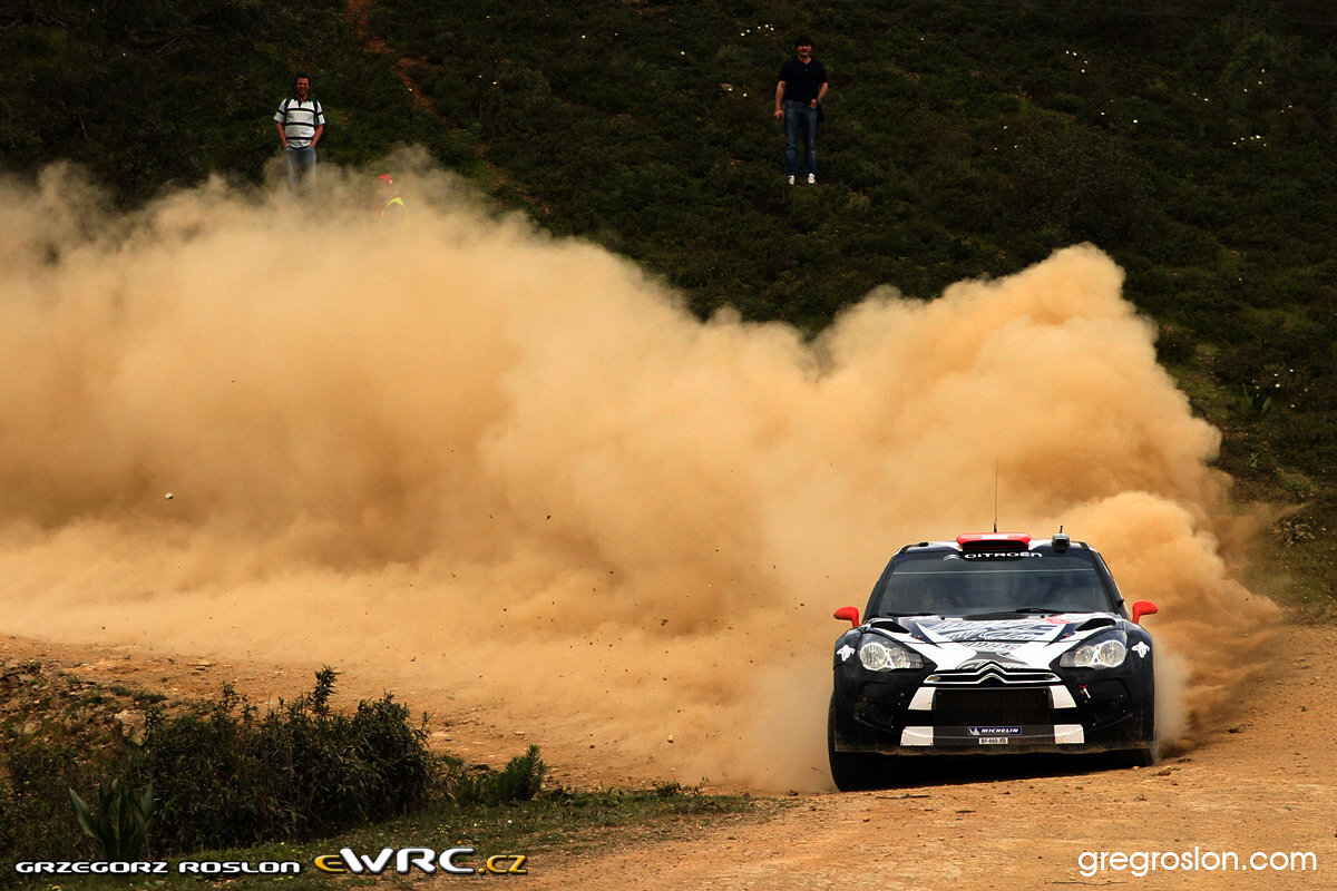 Το 1-2 της Citroen στον αγώνα συμπλήρωσαν οι Loeb/Elena με το 2ο εργοστασιακό DS3 WRC. Και αυτοί έδειξαν ότι μπορούσαν να διεκδικήσουν τη νίκη καθώς σε χρόνους ήταν αρκετά κοντά με τον Ogier. Όμως οι ελπίδες τους για την νίκη "χάθηκαν" στην ουσία στην 9η ε.δ. όπου οι Hirvonen/Lehtinen που εκκινούσαν μπροστά τους είχαν κλατάρισμα το οποίο πρόλαβαν και αντικατέστησαν μέσα στο 2λεπτο πριν προλάβει να τους προσπεράσει ο Loeb με αποτέλεσμα ο Γάλλος να βρεθεί "μέσα" στην σκόνη του Hirvonen χάνοντας περίπου 30'' τα οποία όπως φάνηκε τελικά ήταν αρκετά για να δώσουν "ασφάλεια" στους νικητές! Δημιουργήθηκε θέμα με αυτό το περιστατικό καθώς κατά την διάρκεια του το Γαλλικό πλήρωμα επικοινώνησε με την ομάδα και η Citroen ζήτησε από την Ford να επιτρέψει ο Hirvonen να τον "περάσουν" αφού ήδη είχε χάσει πάνω από 1'30'' με την αλλαγή του ελαστικού αλλά η Ford αρνήθηκε με αποτέλεσμα στο stop της ε.δ. ο εξαγριωμένος Loeb, πάνω στα νεύρα του, να δώσει με το DS3 2 ελαφρά χτυπήματα στον πίσω προφυλακτήρα του Fiesta του Hirvonen. Στην συνέχεια τα πράγματα "εξομαλύνθηκαν" και με την διαφορά πλέον μεταξύ των πληρωμάτων της Citroen να είναι μη αναστρέψιμη, ο Loeb έφτασε χωρίς πρόβλημα στην 2η θέση ενώ κατάφερε να κερδίσει και την τελευταία ε.δ., την Power Stage, προσθέτωντας άλλους 3 πολύτιμους βαθμούς στην τσέπη.