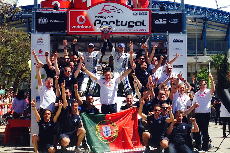 Το βάθρο συμπλήρωσαν ο Mikko Hirvonen με Ford Fiesta RS WRC, στην καλύτερη του εμφάνιση από τη στιγμή που γύρισε στην M-SPORT και ο Mads Ostberg με Citroen DS3 WRC επιστρέφοντας στα καλά αποτελέσματα μετά το διάλειμμα του Μεξικού, χαρίζοντας πολύτιμους βαθμούς στην ομάδα του. Ο Νορβηγός κατέκτησε παράλληλα και την τρίτη θέση στην βαθμολογούμενη τελευταία ειδική του αγώνα, προσθέτοντας ακόμα έναν πόντο στη συγκομιδή του από το ράλλυ, πίσω από τον Jari-Matti Latvala που, τουλάχιστον, δεν έφυγε με άδεια χέρια από την Πορτογαλία, παίρνοντας 2 βαθμούς μετά την πρόωρη εγκατάλειψη του που τον άφησε εκτός δεκάδας.
