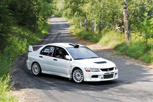 του οδηγώντας ένα Mitsubishi lancer Evo ΙΧ. Ενόψει του αγώνα βρέθηκε