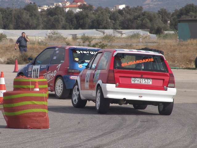 Ο “TFM” έκανε γρήγορους γύρους, χτίζοντας μια διαφορά ασφαλείας, ενώ πίσω από τον Κοσιάβελο «κόλλησε» ο Σ. Δέγλερης με Citroen Saxo VTS. Στον 14ο γύρο και ενώ οι πρώτοι έχουν πέσει σε «κυκλοφοριακό», αφού έριχναν γύρο σε αργότερους οδηγούς, στην Κ7, την πιο αργή στροφή της πίστας, έγινε καραμπόλα από τέσσερα αυτοκίνητα με αποτέλεσμα να τεθούν εκτός μάχης ο Σ. Δέγλερης και ο Καπίρης με Citroen Saxo VTS. Τελικά 1ος τερμάτισε ο “TFM”, χωρίς να απειληθεί ιδιαίτερα, 2ος ο Κοσιάβελος και λιγότερο από ένα δευτερόλεπτο πίσω του βρέθηκε Λεοντόπουλος πραγματοποιώντας εκπληκτικό αγώνα παρά το τετακέ που είχε στην αρχή.