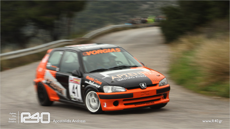 Στο αγωνιστικό κομμάτι, τα φαβορί δε δυσκολεύτηκαν να επικρατήσουν. Στην Ομάδα Α, ο μόνιμος πρωταθλητής της κατηγορίας τα τελευταία χρόνια, Μιχάλης Ευθυμίου έκανε ποδαρικό με νίκη με το Ford Escort WRC, δείχνοντας πως δύσκολα θα χάσει και τον φετινό τίτλο. Ο Σπύρος Βοργιάς με το Peugeot 106 S16 ακολούθησε, επαναλαμβάνοντας την περσινή του επιτυχία στην ομάδα Α έως 2λίτρα. Το βάθρο στην Α συμπλήρωσε ο Γιώργος Αναδιώτης με Renault Clio Sport, ο οποίος παράλληλα τερμάτισε δεύτερος στην Α έως 2 λίτρα. Ο Αναδιώτης το πάλεψε στο δεύτερο σκέλος, αλλά δεν κατάφερε να κάμψει την αντίσταση του οδηγού από την Τρίπολη. Τρίτος στην δίλιτρη κατηγορία της Α τερμάτισε ο Κώστας Παπαχρήστος με το λευκό Citroen Saxo VTS.