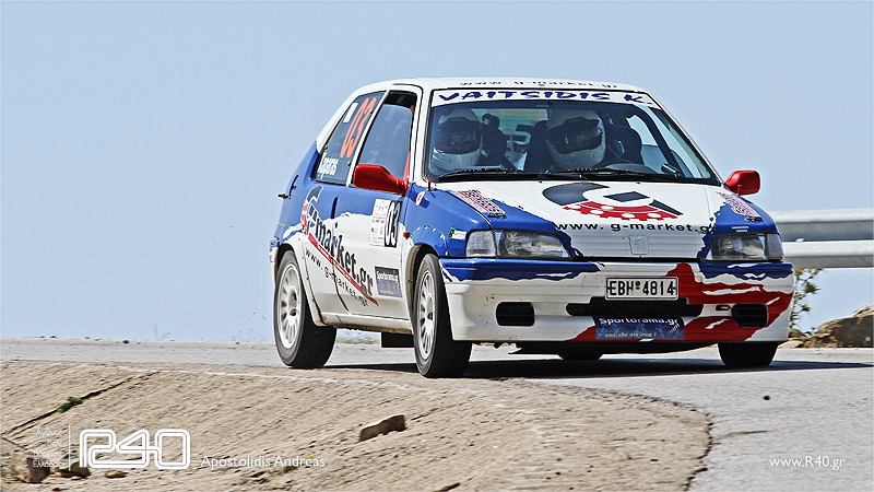 Νικητές στην κατηγορία Α5, μετά από ένα ΄΄καθαρό΄΄ αγώνα αναδείχθηκαν οι Βελέζης/Μαύρος με Toyota Yaris. Εξασφάλισαν διαφορά 40 δευτερολέπτων από το πρώτο κιόλας πέρασμα και το τέλος του αγώνα τους βρήκε με συνολική διαφορά 52 δευτερολέπτων από την δεύτερη θέση. Μετά το πρώτο πέρασμα όλα έδειχναν ότι θα γινόταν μάχη ανάμεσα στα 2 Peugeot rallye 1.3 για την δεύτερη θέση καθώς οι Βαιτσίδης/Καπάρας ήταν 3 δεύτερα εμπρός από τον θείο και ανιψιό, Μάστορα Αλέξη και Βασίλειο. Το πλήρωμα από την Κοζάνη όμως στο δεύτερο πέρασμα (όπως συνηθίζουν) κατέβασε 16 δεύτερα και κατέλαβε τελικά την δεύτερη θέση.