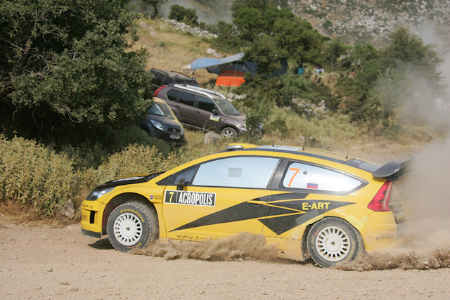 Για το αντίπαλο στρατόπεδο, όμως, αυτό της Citroen Total WRT, η σημερινή ημέρα αποδείχτηκε πραγματική εκατόμβη. Νωρίς το πρωί, μόλις στην πρώτη ειδική διαδρομή, η γαλλική ομάδα είδε τον πέντε φορές Παγκόσμιο Πρωταθλητή, Sebastien Loeb, να κάνει ένα από τα σπάνια λάθη του και ταυτόχρονα να έχει ένα από τα χειρότερα ατυχήματά του. Η C4 WRC καταστράφηκε κυριολεκτικά όταν ο Γάλλος ανατράπηκε ύστερα από σφοδρή επαφή με έναν βράχο που ήταν κρυμμένος σε ένα θάμνο, με αποτέλεσμα ευτυχώς μόνο υλικές ζημιές – όχι όμως τέτοιας έκτασης που να μπορούν να επιδιορθωθούν ώστε ο Loeb να επανεκκινήσει αύριο υπό καθεστώς superally. Η ατυχία για τη γαλλική ομάδα, όμως, δε σταμάτησε εκεί. Ο Dani Sordo είχε και αυτός μια επαφή με βράχο, με αποτέλεσμα να σπάσει την ανάρτηση της C4 και να τεθεί εκτός αγώνα.