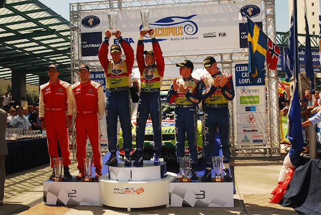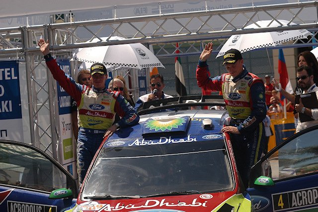 Από εκείνο το σημείο ο Mikko Hirvonen, που βρέθηκε επικεφαλής από την πρώτη ημέρα, μπόρεσε να ακολουθήσει -ουσιαστικά, ανενόχλητος- έναν ιδανικό για τον αγώνα ρυθμό και τελικά να φτάσει 1ος στη ράμπα του τερματισμού εμπρός από το κέντρο του αγώνα, το Club Hotel Casino Loutraki. O δεύτερος οδηγός της Ford, Jari-Matti Latvala, που την πρώτη ημέρα δεν απέφυγε για άλλη μία φορά το λάθος, ενώ μάλιστα προηγούνταν, εκμεταλλεύτηκε τις ατυχίες των αντιπάλων του και κατάφερε να βρεθεί στην 3η θέση, προσφέροντας έτσι στη Ford το μέγιστο αριθμό βαθμών για το Πρωτάθλημα Κατασκευαστών, βάζοντάς την και πάλι στο παιχνίδι του τίτλου. Αυτό έγινε δυνατό καθώς ο νεαρός Sebastien Ogier, στην πρώτη του χρονιά στο WRC, μπορεί να τερμάτισε 2ος, σημειώνοντας μια εξαιρετική επίδοση, όμως δεν ήταν ανάμεσα στους δηλωμένους για το πρωτάθλημα Κατασκευαστών οδηγούς. Το Ακρόπολις επιβράβευσε για άλλη μία φορά όσους κατάφεραν να μείνουν μακριά από προβλήματα, όπως τους Federico Villagra και Conrad Rautenbach, οι οποίοι την τελευταία ημέρα έδωσαν μάχη για την 4η θέση με νικητή τον πρώτο, αλλά και τους Khalid Al Qassimi και Mads Ostberg, που ταλαιπωρήθηκαν λιγότερο από ταχύτερους, αλλά πιο άτυχους συνδυασμούς.