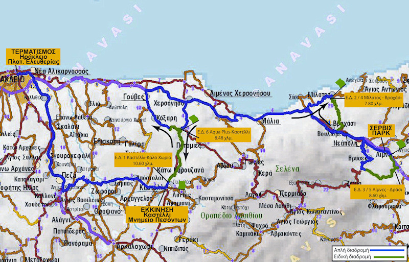Οι διαδρομές είναι έξι στον αριθμό και είναι οι εξής με το ωράριο του πρώτου αυτοκινήτου: Καστέλι – Καλό Χωριό στις 9:33, Μίλατος – Βραχάσι (από τη μεριά της Λατσίδας) στις 10:46 και ακολουθεί 30λεπτη ανασυγκρότηση και 30λεπτο Service στο πάρκινγκ του κοσμικού κέντρου “ΔΙΓΕΝΗΣ Palace” στο χωριό Λίμνες μετά τη Νεάπολη.