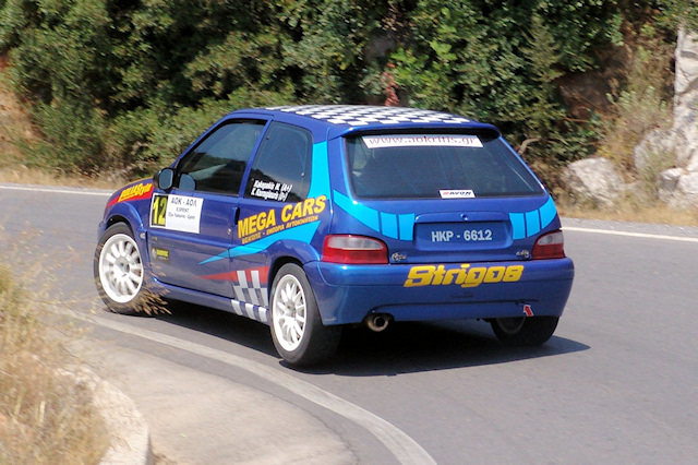 | Τεσσεράμισι δευτερόλεπτα πίσω τους βρέθηκαν οι Μανόλης Κυριανιτάκης – Σήφης Φαραντάκης με VW Golf GTI, οι οποίοι σημείωσαν και το δεύτερο χρόνο όλου του αγώνα. Στην 3η θέση στα δίλιτρα τερμάτισαν οι Δημήτρης Καζάνας – Δημήτρης Βιτσαξάκης με Seat Ibiza Kit Car ύστερα από μια πολύ καλή εμφάνιση και 4οι ήταν οι Νίκος Αμαριώτης – Μανόλης Παπαδάκης με Citroen Saxo VTS. Άτυχοι στάθηκαν οι Δημήτρης Κτιστάκης – Μάνος Κτιστάκης με Peugeot 306 οι οποίοι στο πρώτο σκέλος, πιθανόν από λάθος στα γραφτά, πέρασαν ευθεία από μία αλλαγή πορείας – επιβράδυνση και τέθηκαν εκτός κατάταξης. Παρόλα αυτά στο δεύτερο σκέλος, αν και εκτός κατάταξης, πέτυχαν εντυπωσιακό χρόνο. Στη μεγάλη κατηγορία επικράτησαν οι Γιάννης Παπαδοκωσταντάκης – Σταύρος Κλαριδόπουλος με Mitsubishi Carisma όπου στο πρώτο σκέλος έκαναν λάθος επιλογή ελαστικών, ακολούθησαν οι Στέλιος Μιχαηλάκης – Νίκος Λιγοψυχάκης που για άλλη μία φορά ταλαιπωρήθηκαν με το στήσιμο του Subaru Impreza και 3οι ήταν Νίκος Φραγκονικολάκης – Βασίλης Μπαζιούκας με Ford Escort Cosworth, όπου είχαν ένα τετακέ στο δεύτερο σκέλος. Στα 1600άρια ταχύτεροι ήταν οι Νίκος Κακεπάκης – Μιχάλης Συγγελάκης με Citroen Saxo VTS και ακολούθησαν οι Σταμάτης Φουντουλάκης – Γιώργος Γαροφαλάκης με Peugeot 106 Rallye, που ενώ είχαν ένα μέτριο πρώτο σκέλος, στο δεύτερο σκέλος πέτυχαν εκπληκτικό χρόνο, τον καλύτερο της κατηγορίας. Πίσω τους, στη μάχη της 3ης θέσης, επικράτησαν οι Μιχάλης Πόλιας – Στέλλα Ρουσάκη με Citroen Saxo VTS, αφήνοντας για λιγότερο από δύο δευτερόλεπτα 4ους τους Δάμων Τσικρικωνάκη – Θοδωρή Καραπαναγιώτη με Honda Civic TypeR. Τέλος οι Σταύρος Ζεϊμπεκάκης – Αντώνης Μεταξάκης με Peugeot 106 Rallye και οι Γιάννης Χριστοδουλάκης – Νίκος Μαλιωτάκης με Toyota Corolla, τερμάτισαν στην 5η και 6η θέση αντίστοιχα. Στη μικρή κατηγορία των 1400ων κυβικών, επικράτησαν άνετα οι Λευτέρης Καρδαμάκης – Λευτέρης Σαρρής με Toyota Yaris πετυχαίνοντας τον 4ο χρόνο όλου του αγώνα, ακολούθησαν οι Μιχάλης Πουλάκης – Βαγγέλης Προβιδάκης με ίδιο αυτοκίνητο και 3οι τερμάτισαν οι Γιώργος Δήμου – Λευτέρης Θεοδωράκης με Nissan Micra. Χορηγός του αγώνα ήταν η φανοποιεία “Strigos” στους Μαλάδες Ηρακλείου και χορηγοί επικοινωνίας η ιστοσελίδες CRN.gr και AutoCrete.com, καθώς και ο Athletic Radio 104,2. Επόμενος αγώνας για το Κύπελλο Οδηγών Συνοδηγών Rally Sprint Κρήτης, στις 22 Αυγούστου με διοργάνωση και πάλι από τον Αγωνιστικό Όμιλο Κρήτης. Δείτε τους χρόνους σε μορφή Excel |