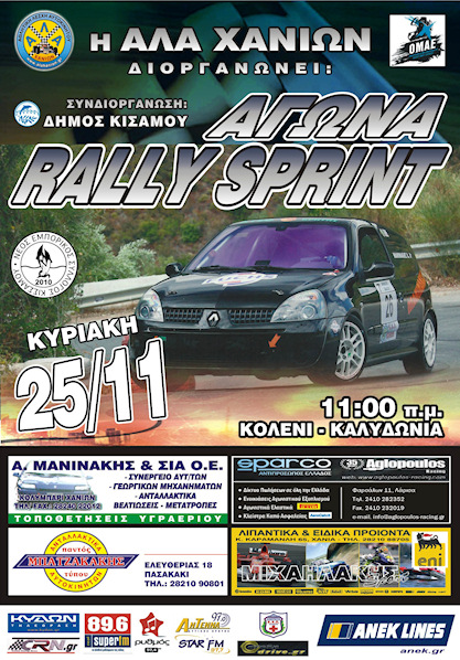 Με τον καιρό να κάνει το χατίρι όλων και την παρουσία αρκετών θεατών, παρά τις λιγοστές συμμετοχές, πραγματοποιήθηκε ο τελευταίος αγώνας της χρονιάς για το Κύπελλο οδηγών – συνοδηγών Rally Sprint Κρήτης, στη διαδρομή Κολένι – Καλυδωνία, που διοργάνωσε η Α.Λ.Α. Χανίων.