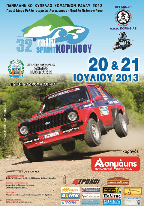 Ξεκίνησε η προετοιμασία για το 32ο Rally Sprint Κορίνθου που είναι ο 3ος αγώνας για το Κύπελλο Χωμάτινων Ράλλυ 2013 που έχει προκηρύξει η Επιτροπή Αγώνων της ΟΜΑΕ ενώ προσμετρά στο Πρωτάθλημα Ιστορικών Αυτοκινήτων & στο Έπαθλο Πελοποννήσου.