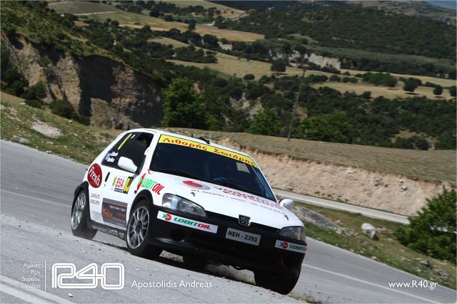 Επιστρέφοντας στα 1600, τη δεύτερη θέση πήραν οι Θεοφανίδης - Πανταζής με καλή εμφάνιση και λίγη ανησυχία για τη θερμοκρασία του μοτέρ στο Peugeot 106 που συντηρεί η Vatsos Rally Team.